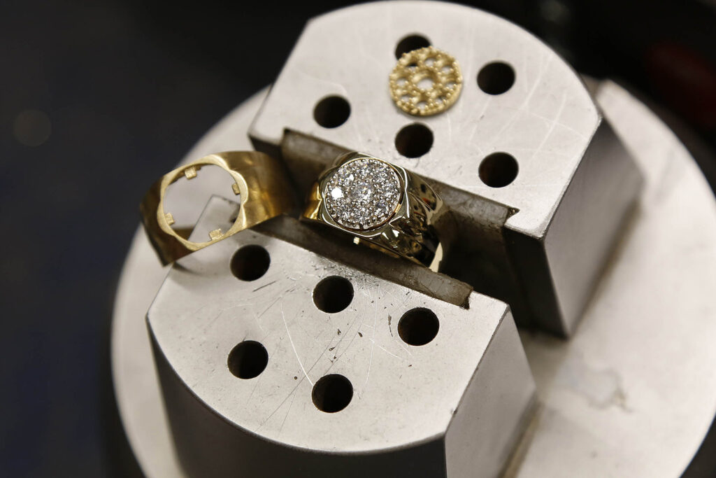 Ovdje počinje prava čarolija. U našoj radionici, iskusni majstori zlatari posvećuju se ručnoj izradi svakog komada po narudžbi, unoseći u njega preciznost i pažnju prema detaljima. S više od 50 godina iskustva, njihova vještina i predanost odražavaju se u svakom potezu i svakom blistavom detalju, stvarajući komad koji oduzima dah.