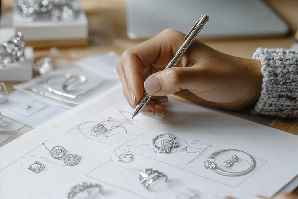 Podijelite svoju viziju s našim talentiranim dizajnerima, koji će s pažnjom slušati vaše ideje i sarađivati s vama kako bi stvorili početne skice vašeg jedinstvenog komada nakita. Tokom ovog kreativnog procesa, zajedno ćemo istražiti svaki detalj – od odabira oblika i linija do nijansi i završne obrade. Naš cilj je osigurati da svaki aspekt dizajna precizno odražava vašu osobnost i stil, stvarajući komad koji je uistinu prilagođen samo vama.